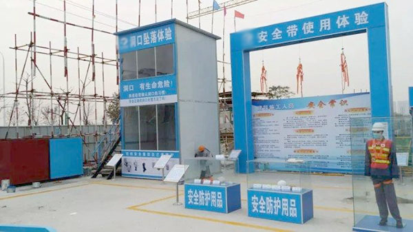 一般来说,建筑工地都配置的有安全体验馆,通常包括一般配置体验馆安全门、安全讲评台、安全带使用体验、洞口坠落体验、消防器材演示体验、安全帽碰撞体验、综合用电体验、消防器材演示体验、平衡木体验、钢丝绳体验、重物搬运体验、安全防护用品展示等设施区。